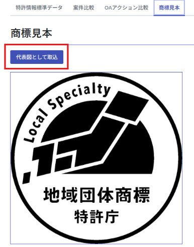 ③取込可能な商標画像が表示されますので、「代表図として取込」ボタンをクリックします。