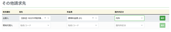この際、「その他請求先」にて自社の出願人マスタを請求先として設定します。参照リンク:出願人と異なる請求先に請求書を発行する場合