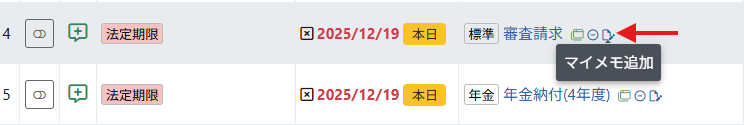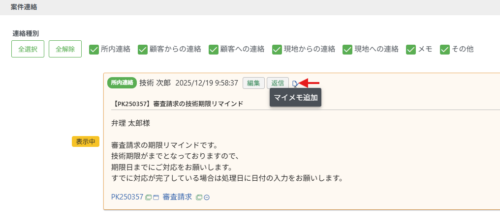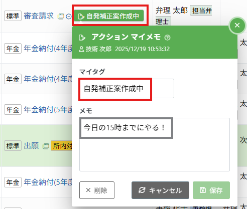 案件編集権限がないユーザもマイメモの登録が可能です。ご自身のタスク管理にぜひご活用ください。