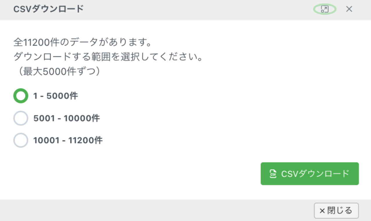 CSVダウンロードの上限件数が拡張されました(最大5,000件/一括)