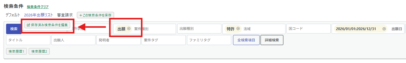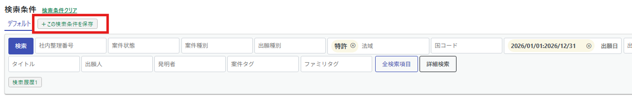検索条件を入力した後、「+この検索条件を保存」ボタンをクリックします。