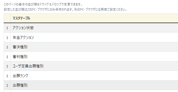 マスタ一覧の表示順は、よく使用する順番に変更することができます。