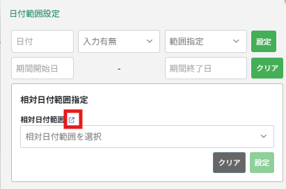 あらかじめ設定した相対日付範囲を利用することで、都度日付を入力しなくても、基準日に応じた期間で検索できます。
