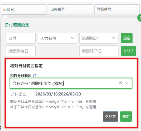 相対日付範囲を指定して検索する