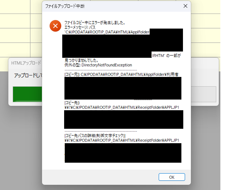 特許庁連携アプリで取り込む際に「ファイルコピー中にエラーが発生しました。」というファイルアップロード中断の警告が表示されました。