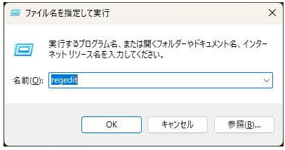 ②-1 キーボードで「Windowsキー + R」を押し、「regedit」と入力してOKを押してください。
