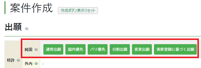 国内優先・パリ優先・分割出願・変更出願・実用新案登録に基づく出願の案件作成方法については、こちらをご参照ください。