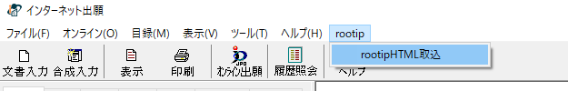 出願が完了したら、インターネット出願ソフトからプルーフデータを受理済フォルダから「HTML変換」していただき、rootipへ取り込みます。