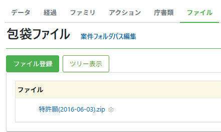 - 案件の「ファイル」タブまたは「庁書類」タブを開きます。